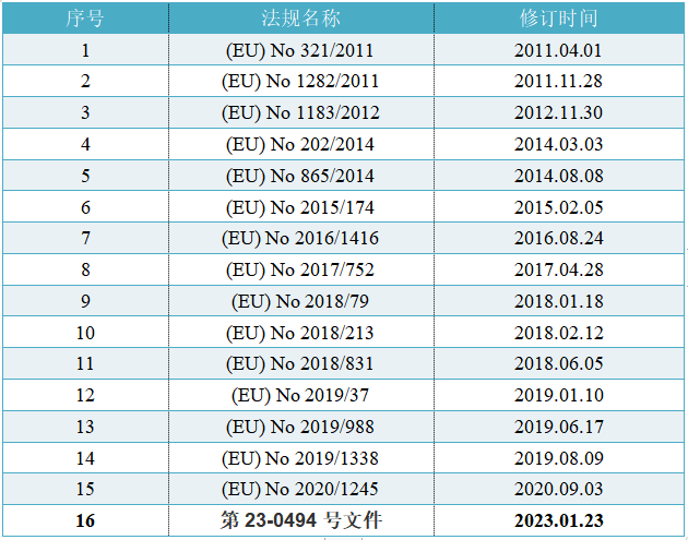 2023Äê1ÔÂ23ÈÕ£¬£¬£¬£¬£¬ÌìÏÂÉÌÒµ×éÖ¯£¨WTO£©Ðû²¼µÚ23-0494ºÅÎļþ£¬£¬£¬£¬£¬¶Ô£¨EU£©No 10/2011¾ÙÐÐÁËÖ÷Òª¸üУ¬£¬£¬£¬£¬ÕâÊÇ×Ô¹æÔò(EU) No 10/2011Ðû²¼Ö®ºóµÄµÚ16´ÎÐÞ¶©¡£¡£¡£¡£¡£¡£¡£¡£Ö÷ÒªÐÞ¶©ÐÅÏ¢ÈçÏÂ±í£º